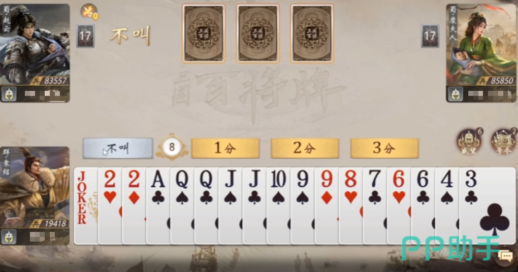 若袁绍担任地主,首回合即达成3点威望并发动【号令】,可直接锁定一名农民的最大对子,不仅实现先手拆解,更能反向推断其剩余手牌结构,为后续出牌节奏与压制路径提供明确依据,属于高性价比开局策略。