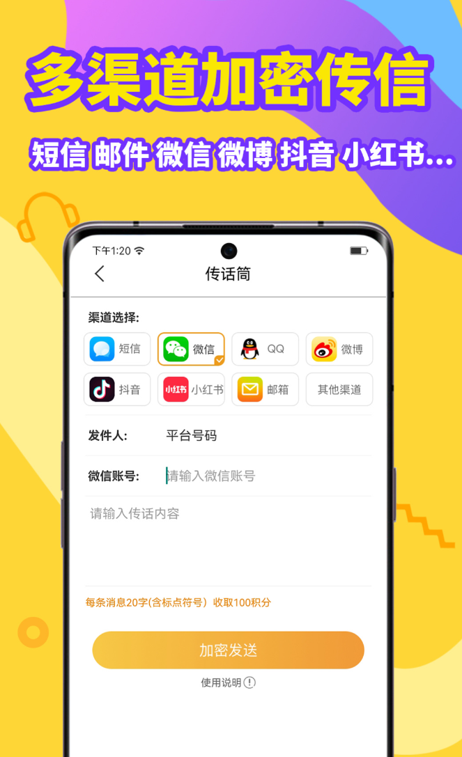 打电话的时候对方看到的是虚拟号码,真实号码不会暴露,这个设计在租房、商务洽谈这类场景里很实用。通话加密用的是点对点密钥生成方式,物理层面就把监听的可能性堵住了。录音可以加密保存,短信走的是一邮一密处理,相册和日记也有独立的密码保护空间。有个叫"传话筒"的功能,帮用户转达一些不好当面说的话,支持短信、邮件、微信多个渠道发送。
