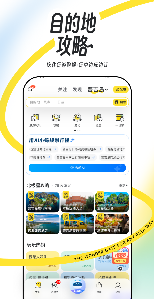 平台上积累了大量真实用户写的攻略和游记,这些内容的参考价值比官方介绍高得多,特别是一些冷门目的地,能找到别处看不到的实际体验。覆盖超过6万个旅游目的地,点评数量庞大,出发前查查心里更有底。行程规划功能做得很系统,回答几个关于偏好和预算的问题,就能生成涵盖住宿、交通、行程安排的完整方案,适合懒得自己做攻略的用户。