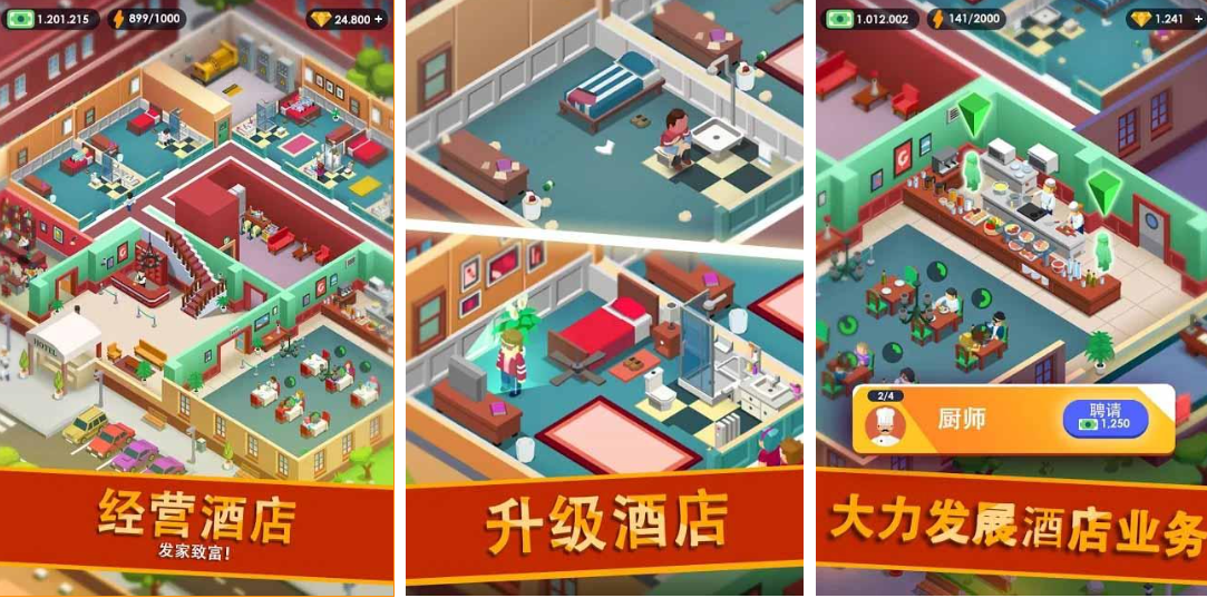 这是款可以自定义经营酒店的单机版模拟经营游戏,自定义装修、升级酒店的游戏概念很好玩,有着Mod菜单的加成也可轻松完成经营类型的任务,大力发展酒店业务就可以获得更多的资源道具,卡通生动的背景营造让酒店地图更加清新,欢迎经营游戏爱好者进入酒店大亨的世界中完成任务。