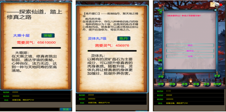 武界养老修真这款特殊的修真养成类游戏耐玩性不错,利用各种各样的文字剧情为玩家塑造出真实的仙侠世界,修真冒险与养老元素的结合也是毫无违和,修真冒险的主要任务加上多元化的玩法参与感十足,超丰富的修真养成过任务加成也给人不俗的代入感,适合养老的游戏气氛不会让玩家失望。
