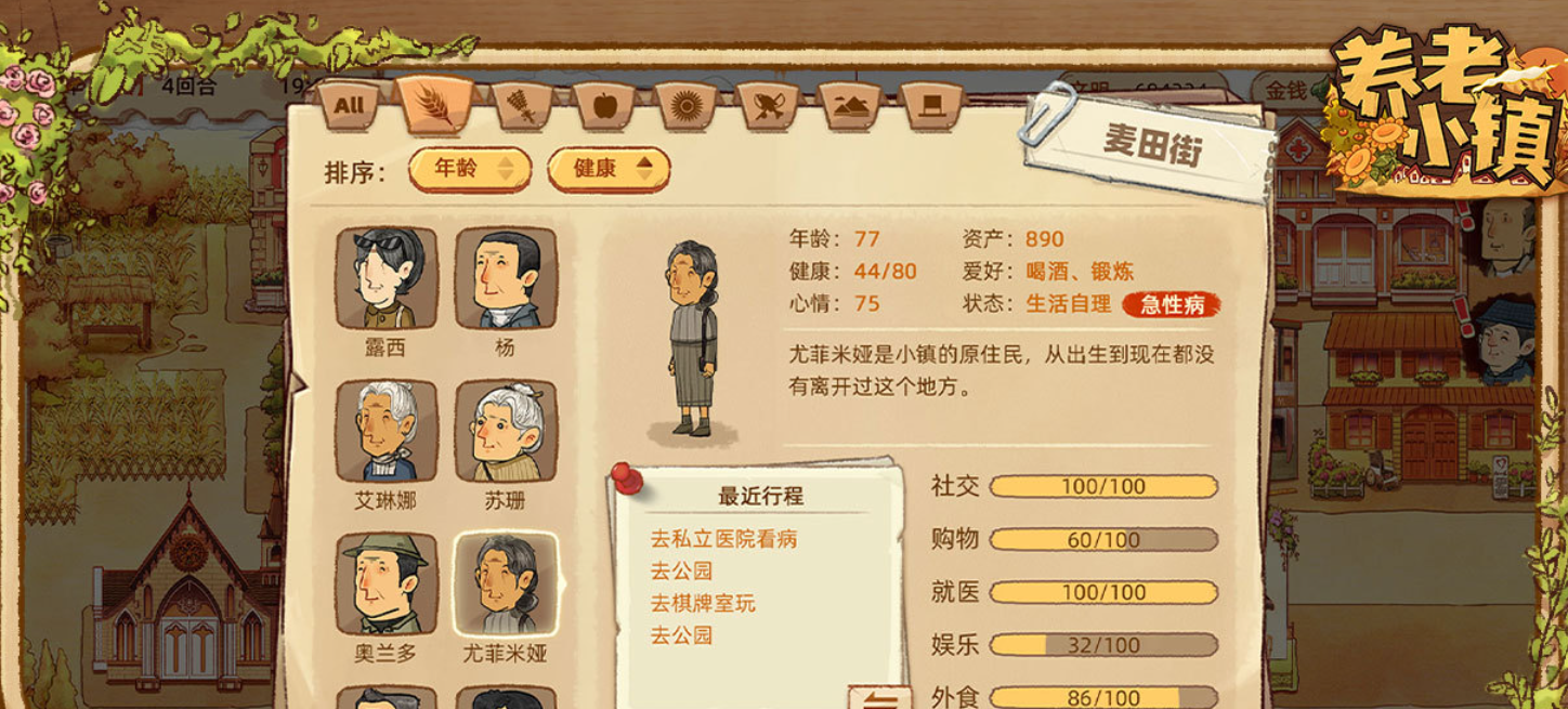 这是款可以经营养老院的免费养成类游戏,加入了养老院和小镇之类的养成目标等待着玩家互动,养老互动的游戏理念带来的新鲜感也相当不错,你的任务就是尝试照顾养老小镇中的老头老太太,很有辨识度的游戏画面和温馨的气氛乐趣十足,你也试着进入温馨的养老小镇与老人进行互动吧。