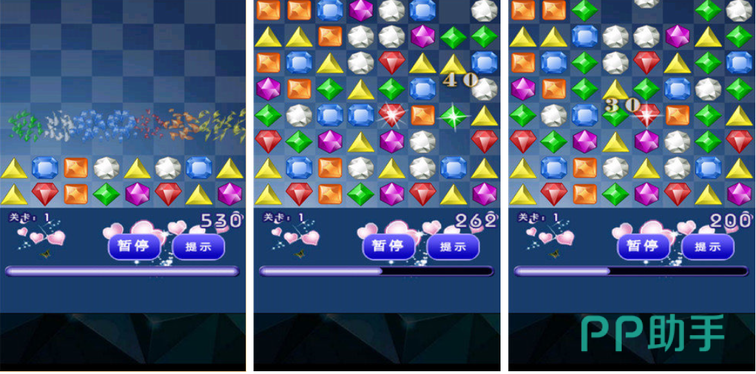 这款消灭星星游戏采用了钻石主题的内容,将星星换成了光彩夺目的钻石大大增加了观赏性,消除机制很完善可以轻松消除各种钻石,绚丽的消除特效也是消灭星星游戏的主要魅力,个性化的互动性操作和丰富的玩法值得体验,AI系统自带的提示功能辅助大家快速消除满屏幕的钻石。