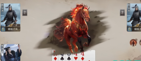 的卢这匹坐骑的技能可以把牌面上随机抽取的一个对子变成三张,这样在形成炸弹或者关键连对的时候非常有用。但是该技能的触发时机十分重要,在顺子或者连对出完之后再使用,否则很容易和庞统的招式重合,浪费了机会。绝影的作用更灵活,它可以将一张牌的点数增加1,但需要注意的是,增加点数的牌不能参加炸弹或者广义炸弹的组合,包括万能牌和马超的技能牌。玩家在使用绝影的时候要注意标记技能的武将,否则会出现意想不到的结果。绝影更适合在手牌点数灵活运用时使用,给组合带来意外的变化,提高战术的深度。
