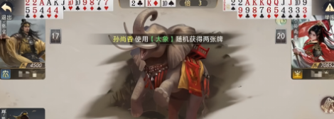 大象在准备阶段会随机获得两张牌,这二张牌不能选择,可以是一张散牌,也可以是两张炸弹。由于随机性,大象成了既带风险又带机遇的坐骑,它适合于那些敢于冒险、善于应付突发事件的玩家。游戏坐骑种类虽然不多,但是每匹坐骑都有自己的特点,不能被其它任何一种坐骑所取代。只要玩家根据手中武将和局势做出合理的选牌、布阵选择,并在游戏中获胜,那么就说明坐骑为该局比赛带来了很好的策略性及趣味性。