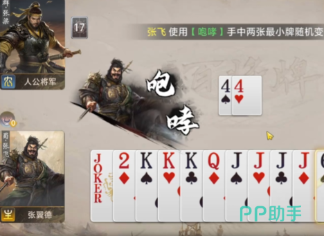 张飞的优势不是技能本身容易理解,而是使得牌局会出现很强势的变化。很多时候,玩家拿到张飞之后如果能够准确地触发咆哮技能,就可以瞬间改变手牌的局势。比方说张飞第一手打出对子3,第二手再打出对子3,就可以触发技能,使手中最小的牌变成比当前最小牌更大的数字。因此原本被握在手中的小牌就可以顺利地出现,进而推进游戏的发展。对那些想快速利用张飞创造胜局的人来说,掌握好这一技能的触发时机就显得十分重要。