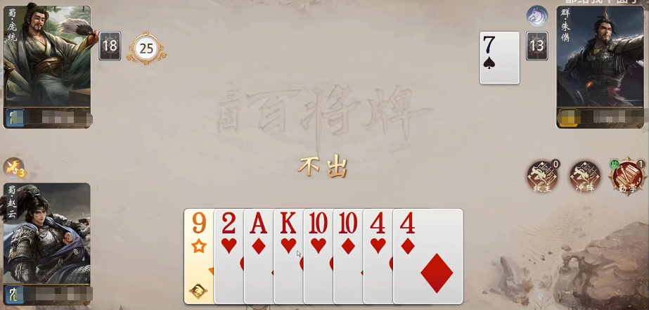 赵云会运用精妙的兵力调度之术,其主动技能的设计就是放弃手中的任意单张或者双张牌,用一张功能性的万能符代替它来实现手牌结构由无序向有序转变、效能由低向高转变。该机制冲破了传统游戏由于随机性造成的不确定性,让玩家可以自行打造顺子、连对和炸弹这些具有很高价值的牌型组合,从而很好地克服开局不利或者局势受阻所带来的心理负担。赵云技能最显著的特点是给玩家赋予了出牌节奏的掌控权,即便是处在不利的局面之中,也能够很快地将战局扭转过来,并达成战术目的。