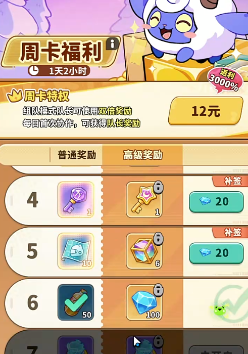 玩家也可以选择价值30元的福利月卡,获取福利月卡之后能直接领取300钻石,同时连续30天每天还能领取100钻石,福利月卡能让副本玩法和其他的主线变成两倍速,下线之后的收入可以增加30%,游戏里的睡眠时间也能增加四个小时,更重要的是可以获得梦域巡航特权门票,假如同时开启两张月卡,还可以额外获得300钻石,不喜欢购买月卡的玩家可以购买周卡,花费12元能连续领取7天奖励,每天通过签到就能获得钻石和其他物品,氪金选择各有不同,大部分能获取的都是钻石,对于玩家来说是非常有帮助作用的,周卡还有额外特权,组队模式下能获得双倍奖励,假如玩家发起协作,还能得到额外的队长奖励。