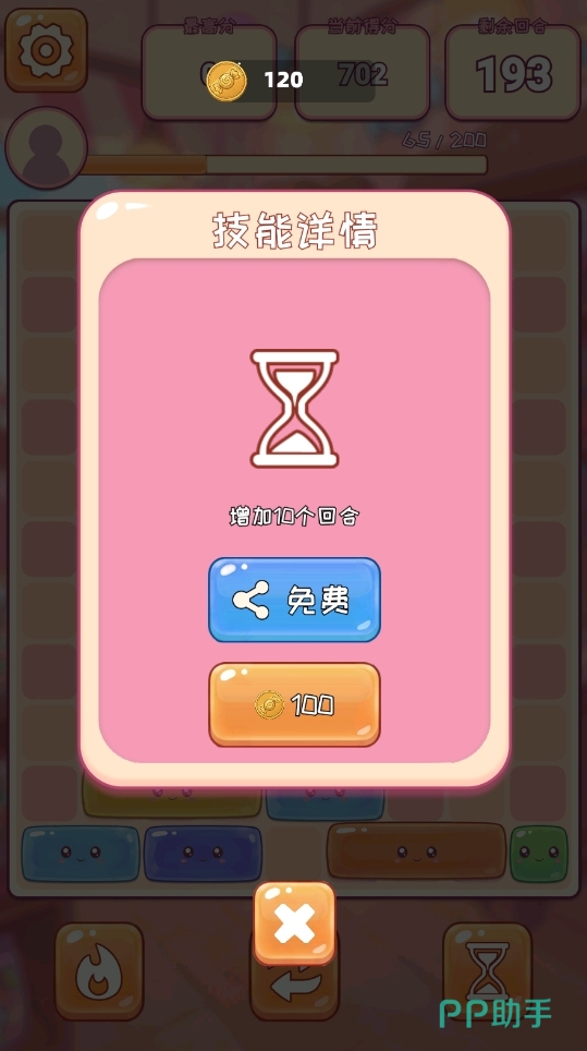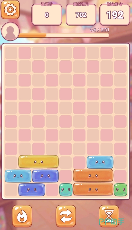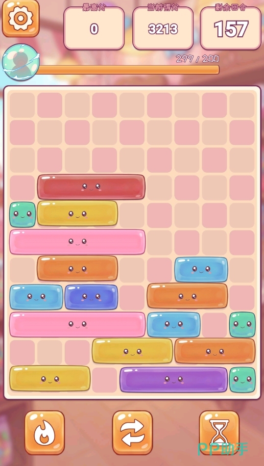 当然了,游戏也考虑到随机生成的这一行可能会给玩家带来困扰,所以也在游戏里放置了三种可用道具,让处于困境之中的玩家能得以破局。每一种道具都有适配它们的使用情景,要是玩家们能够合理地去利用,它们也会为玩家带来极高的回报。此外,玩家们每次完成糖果消除时,都能为自己积攒能量,若是能量达到了200,还能使用一次技能指定消除某一长度的糖果方块,但要注意技能可消除的糖果方块有着数量限制,且长度越长的糖果方块在被技能指定时,它会被消除掉的数量也越少。