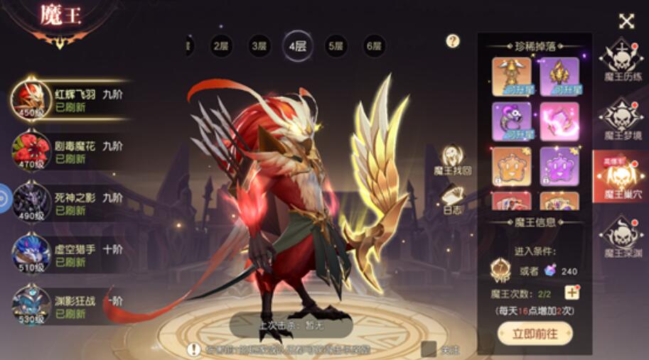 其实对于玩家来说,他们来到了魔王系统之后,可以经过魔王历练,这个其实是玩家日常必刷的一个地方。每天能够挑战三次,如果说玩家觉得次数不够的话,每30分钟就会恢复一次,一般到了凌晨之后就会重置次数,当然会员等级达标之后,玩家这时候还能够额外花彩钻购买次数,不过玩家来到这里,自己也需要引起注意,因为这个地方比较适合组队,一旦玩家组队之后胜利的话,通常全队的成员都能够拿到奖励。