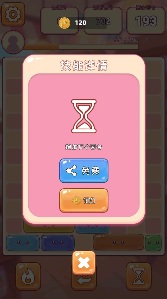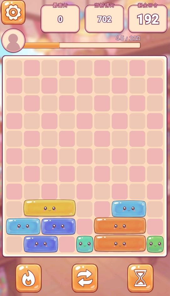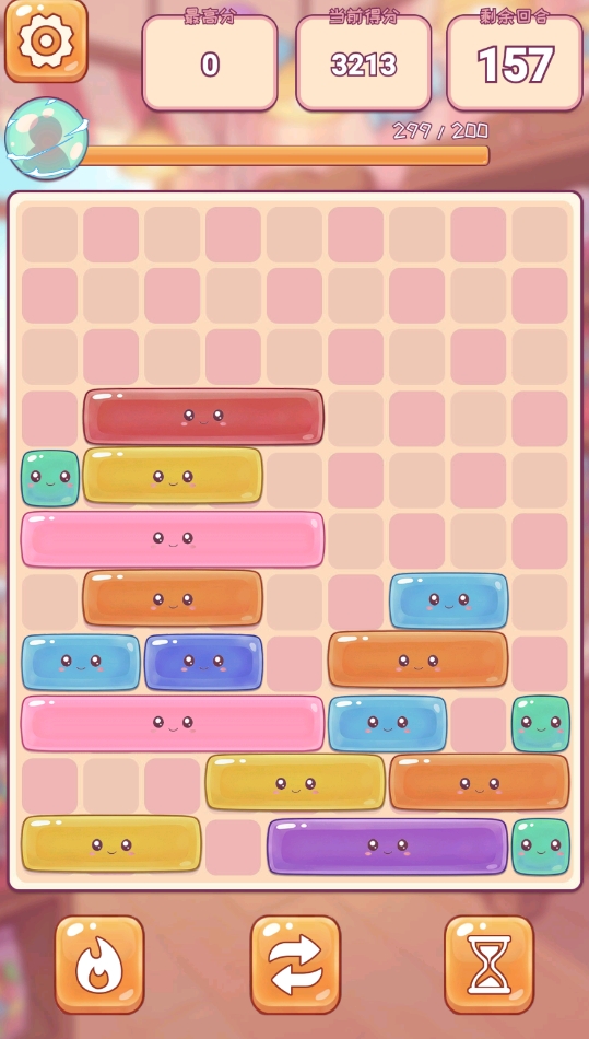 为平衡高随机性带来的挫败感,游戏内置三类功能性道具,分别对应不同困境场景:例如卡位阻塞、关键色缺失或临近堆叠溢出等状况。合理规划道具使用时机,可显著提升通关效率与容错空间。此外,每次成功消除均会累积能量值,当能量达到200点时,即可激活专属技能——指定清除某一行中连续长度为N的同色糖果方块。需注意的是,该技能对可消除数量设有硬性上限,且所选长度越长,实际被移除的糖果数量反而越少,这一设定进一步强化了策略权衡的深度。
