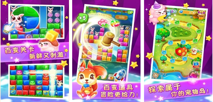 叙事驱动型消除作品,以“解救被困宠物”为主线贯穿全篇。每张地图对应不同生态场景(森林、雪原、沙漠等),宠物形象差异化设计。关卡目标多样化:营救指定数量动物、收集特定道具、达成连击数等。道具组合策略性增强,鼓励玩家尝试多种解法路径。