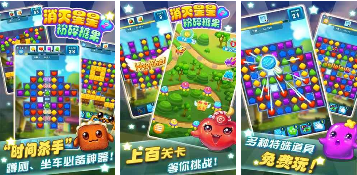 融合糖果题材视觉元素,星体表面添加糖霜质感与晶莹高光。道具系统深度整合,如“彩虹糖炸弹”可清除整行、“棒棒糖锤子”实现定点爆破。关卡数量超120关,含多阶段Boss战设计。背景音乐采用欢快八音盒旋律,节奏与消除动作精准匹配,强化心流体验。