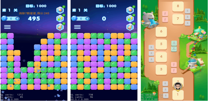 主打离线畅玩特性,安装包体积轻量,适配中低端机型。无需网络验证即可启动,支持断点续存。核心规则延续经典三消逻辑,但优化了连击判定与区域选择响应速度。色彩饱和度高,星星造型圆润活泼,配合清脆音效,营造出轻松愉悦的解压氛围。适合通勤、午休等短时场景使用。
