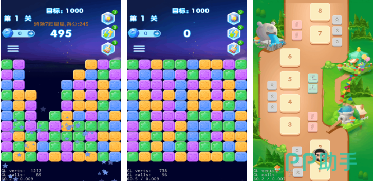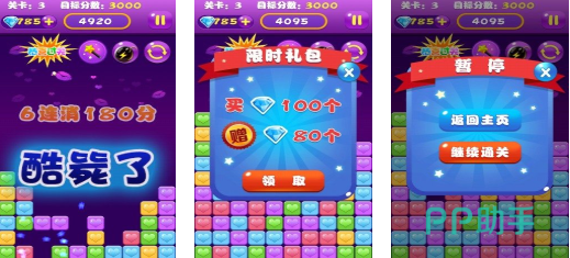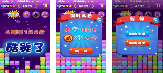 系列第三代正统续作,采用模块化关卡引擎,支持动态难度调节。新增“挑战模式”侧重反应速度与资源规划,“休闲模式”则弱化时间压力,强调布局思考。保留原汁原味的相邻同色消除机制,同时拓展道具合成系统与能量槽成长体系。定期上线节日主题副本,维持内容新鲜度。