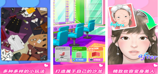 融合美妆模拟、护肤管理与造型搭配三大模块的综合型女性向游戏。不仅提供粉底、遮瑕、高光等核心彩妆工具的操作模拟,还系统整合肌肤类型识别、季节护肤方案、敏感肌护理要点等知识模块,帮助玩家在娱乐过程中建立科学化妆与日常保养的认知框架。