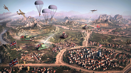 以宏观战役推演与微观单位操控双轨并行,玩家需统筹空袭编队、伞兵空降、装甲突击与步兵渗透四类作战维度。天气系统影响能见度与装备性能,雨天降低狙击命中率,沙尘暴干扰无线电通讯。地图涵盖北非沙漠、东线雪原及太平洋岛屿三类地理带,每区域配备专属载具与战术规则。