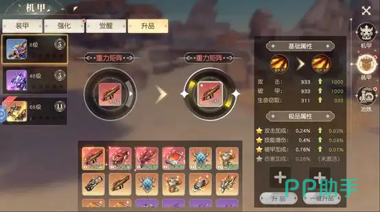 机甲零件主要来源于冶炼系统;升星则需消耗同名机甲或指定设计图纸——该类图纸属于稀有资源,建议集中用于主力培养机型;此外,装甲系统允许玩家在模块槽位中装配已获取的装甲组件,进一步叠加生存能力与输出强度。