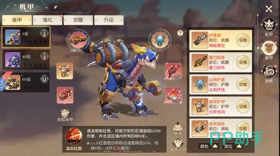 游戏中,机甲可通过魔王探险、限时副本、活动奖励及商城兑换等多种方式获取。获得后支持升级、进阶、升星与装甲装配四大培养路径,所有属性加成将实时同步至角色面板。其中,升级需消耗动力催化剂,每提升一级不仅增强基础属性,还将解锁新的技能或被动效果;进阶则依赖各类机甲零件,操作过程中存在失败概率,但失败仅消耗材料,原有阶数不受影响。