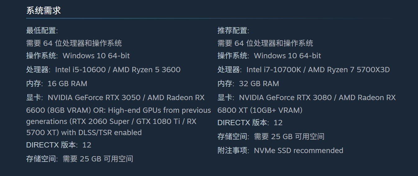 根据官方公布的系统要求,Deadhikers最低运行环境需基于Windows 10 64位操作系统。处理器方面,Intel Core i5-10600或AMD Ryzen 5 3600可支撑基础运行,配合16GB双通道内存,可满足单人模式及中小规模合作任务的流畅需求。若希望在4K纹理加载、AI行为密集交互以及满员服务器中保持稳定输出,则推荐配置为:Intel Core i7-10700K或AMD Ryzen 7 5700X3D处理器,搭配32GB DDR4内存——该组合能有效规避复杂地形渲染、物理模拟叠加及音效并发时可能出现的资源争抢现象。