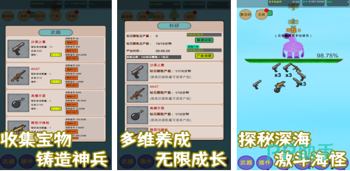 融合RPG养成与射击战斗的辐射题材作品。武器系统支持多阶合成:基础枪械可嵌入辐射增幅器、铅芯弹匣、电磁稳定器等配件,最高达成5级属性强化。怪物图鉴包含37种变异体,每类具备独特抗性谱系与弱点部位。深海关卡设定含高压环境、低能见度与磁暴干扰三大机制,考验玩家战术配置能力。