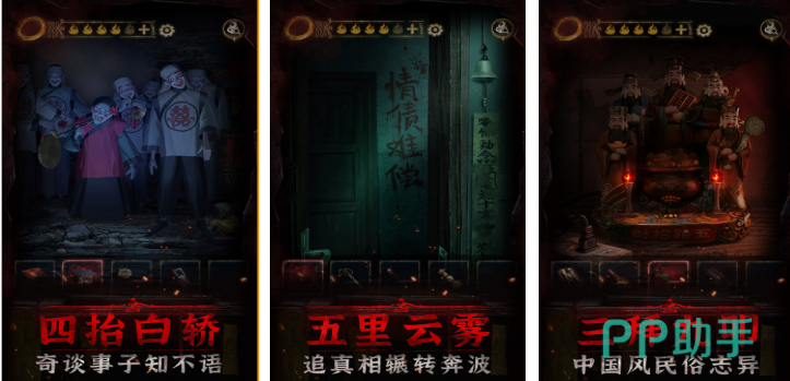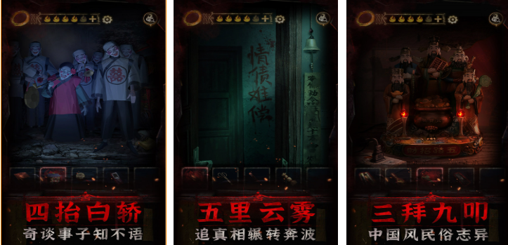 延续纸嫁衣IP中式民俗恐怖基因,本作深化“婚俗禁忌”主题。红黑主色调中穿插褪色喜帖、残破剪纸与铜镜裂痕等意象,UI界面模拟泛黄宣纸纹理。解谜逻辑紧密关联传统仪轨——如需按《朱子家礼》记载顺序摆放祭品,或依据二十四节气时辰调整香炉方位。剧情承接前作未解伏笔,新增“阴婚契约”支线拓展世界观厚度。