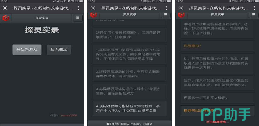 文字冒险类规则怪谈代表作,采用纯黑底白字界面模拟古籍手抄本阅读体验。百万字文本库构建动态规则系统:玩家每次选择将影响后续条款生效条件,部分选项触发隐藏“悖论协议”,导致界面文字逐行错位或倒置。关键线索藏于标点符号异常、段落间距突变等细节,强调观察力与逻辑推演能力,被玩家社区称为“手机端最烧脑的规则解构游戏”。