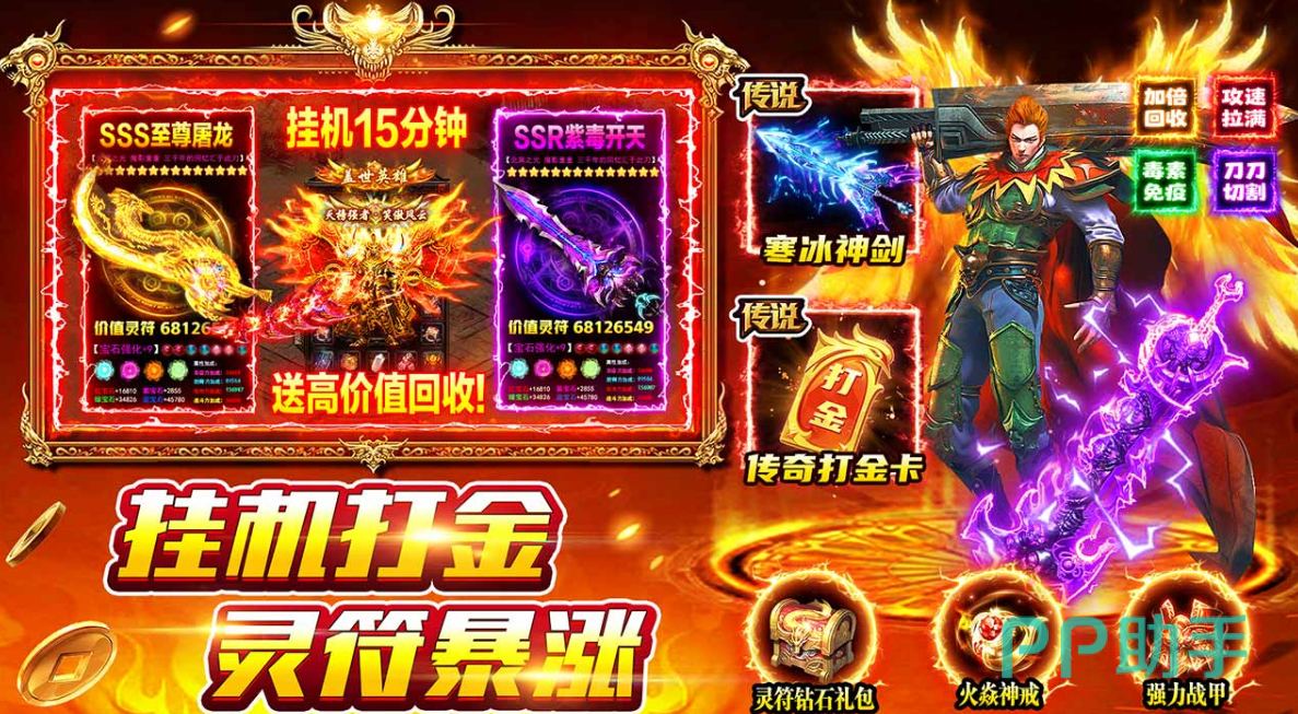 主打九职业高爆打金,保留经典传奇战斗手感,而且像升级、装备爆率和跨服竞技体验,打造公平且吃操作战斗的游戏环境,适合散人玩家和热衷热血PK、打宝搬砖的玩家。让广大玩家到时候可轻松得到沉浸式体验。