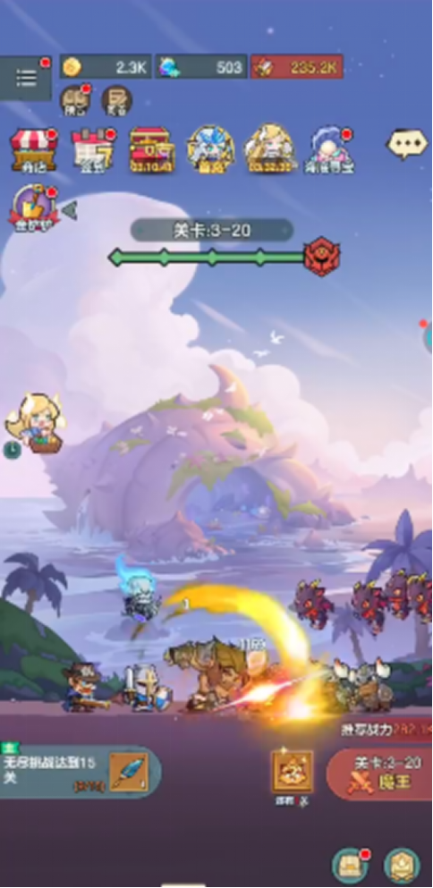 游戏剧情围绕远古龙族苏醒展开,人类、精灵与另一未知种族共居于同一片大陆,因资源分配、信仰分歧与历史积怨,三方关系持续紧张,大规模冲突一触即发。核心玩法融合轻度策略与自动化成长机制:玩家通过挂机即可稳定提升角色等级与战力;普通战斗采用“点击即攻”模式,单次触控即可触发高额伤害;高难度BOSS战同样沿用该逻辑,同时支持离线自动战斗与资源累积,兼顾碎片化时间管理与长期养成节奏。