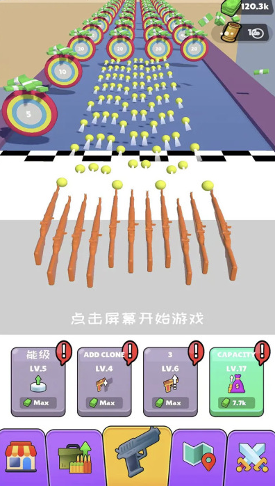 采用极简交互机制:滑动屏幕控制角色移动,武器全自动锁定并开火,大幅降低操作门槛。击败敌人后掉落金币,用于升级枪械属性,提升火力强度与射击稳定性。内置狂暴射击、弹幕扩散等主动技能,释放瞬间覆盖大范围战场,实现高效清怪体验。关卡节奏明快,适合短时高频游玩。