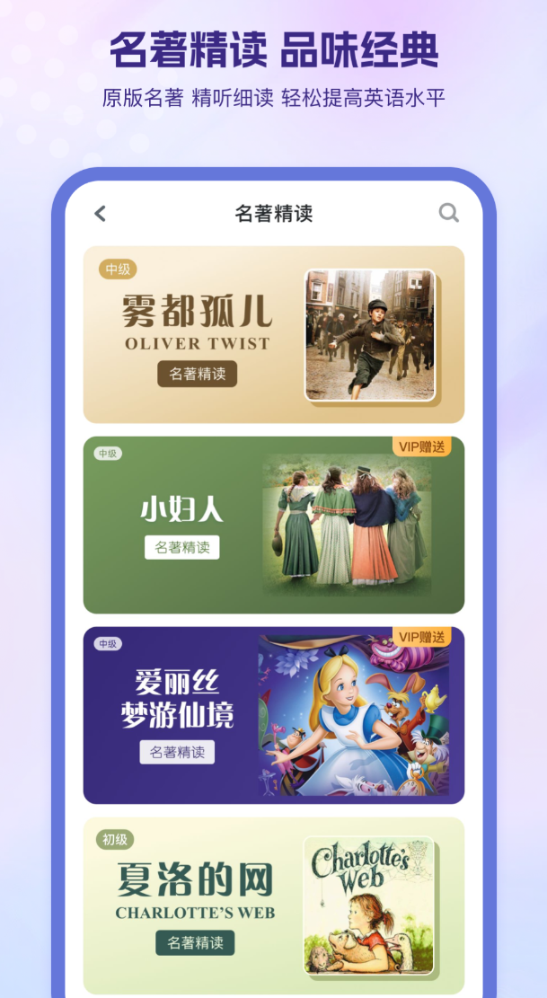 该应用以语言习得理论为底层逻辑,构建了“预习生词→泛听理解→逐句跟读→全文回顾”四阶训练路径,各环节紧密衔接、不可逆序。内置即时查词功能,点击任意生词即可查看释义、例句,并一键加入个人词汇本,实现听力输入与词汇积累同步推进。内容难度分级清晰,覆盖初级到高级多个水平段;采用艾宾浩斯记忆算法智能规划复习节点,无需手动制定计划;支持全部课程离线下载,地铁、公交等碎片化场景均可高效利用。