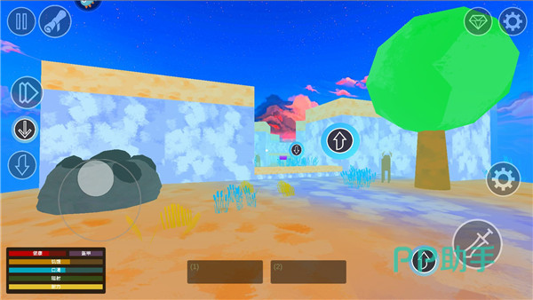 生存角色的饥饿值,口渴值,体力值都是在生存时的重要指标,来到野外狩猎时,还可以通过采集野果的方式充饥,野外的水源也很方便寻找,这些都满足了玩家最基本的生存需求。方块的世界中涵盖了像森林、山地沙漠的大型地图,在探索中可以利用自己收集到的木材,石头等资源制作出强力的生存工具。