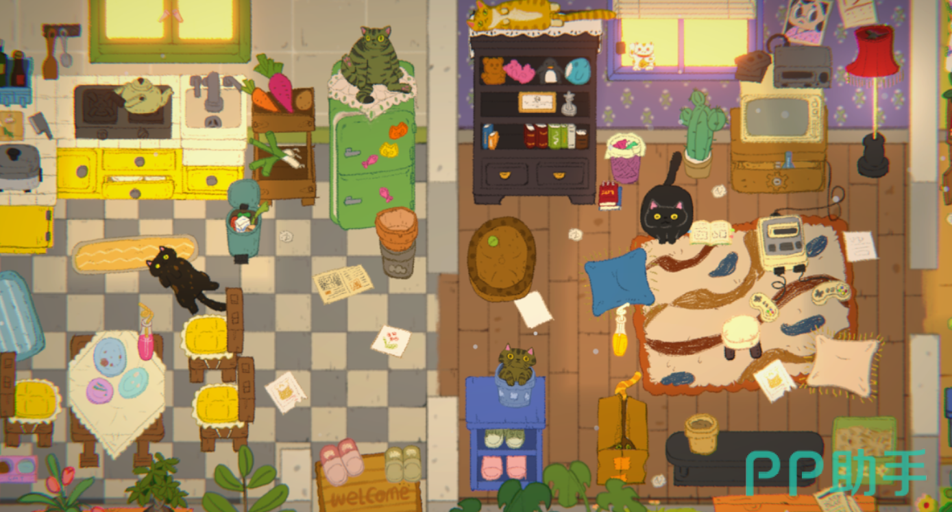 上帝视角俯视式解谜冒险游戏,玩家操控戴草帽的小猫在抽象几何风格地图中收集星尘钥匙。场景含重力反转区、镜像对称门、时间暂停装置等12类机制单元,谜题需结合空间记忆与实时操作。美术采用低多边形建模+柔光滤镜,BGM随探索进度动态分层,全程无文字提示,依赖视觉符号引导。