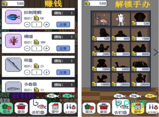 也充满着复古以及可爱像素的风格所打造的休闲独立手游,除了支持大家在这里面利用鱼钩的方式完成钓鱼体验,还支持做饭,甚至是赚钱,玩法上特别的丰富,每一个玩家都能在这里面利用自己所钓到的各种鱼儿制作美味的饭团,或者是融入了各种鱼儿的美食,比如三文鱼吐司,或者是刺身拼盘等,都需要你钓到各种各样的鱼饵以后,才能够完成美食制作。