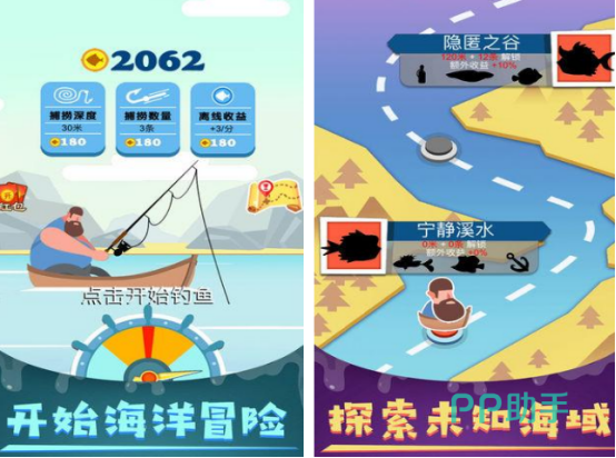 整体以特别可爱的风格,通过点击开始钓鱼,你就可以化身为游戏当中的主角开始海洋冒险。有着简单容易的玩法内容,可以放松身心,将会置身于充满着享受宁静氛围的垂钓地点,不断的探索未知的海域以后,能获得意外惊喜,成为真正的钓鱼大师,在得到了海量的奖励以后,也能解锁不同的钓鱼场所,有助于钓鱼。
