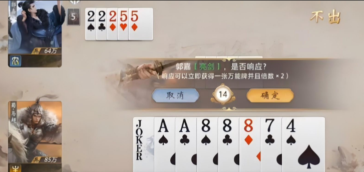 玩家熟悉每一个武将的特点,就能在对局里找到合适的打法,游戏中还有名马系统和亮剑机制,能让对局出现更多不一样的情况,赤兔马可以少用一张牌,直接组成顺子。的卢能把手里的对子补成三张一样的牌,亮剑要等到指定回合才能触发,触发之后这一轮打出的牌带来的效果会直接翻倍。局势不好的时候用上,能直接改变场上的走向,玩家要根据手里的牌型选择使用。