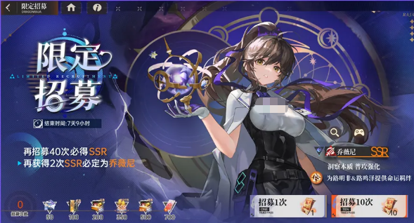 这次活动新出了一位限定SSR伙伴,名字叫乔薇尼,活动期间正式开放招募。专员可以用「限定招募券」来招募她。招募次数累积到一定数量之后,会有对应的奖励发放,包括「SSR限定伙伴任选」和「SSR全光暗龙文任选」这两项比较实用的奖励。另外还有一个「专属启灵自选-真理之瞳」,这个是乔薇尼的专属启灵,有需要的专员记得留意一下领取条件。