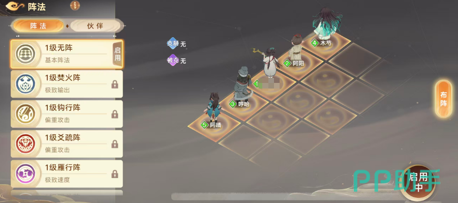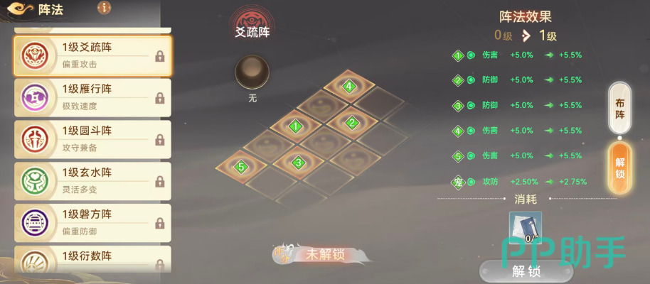 以高爆发输出场景为例,“焚火阵”是前期主力选择之一。该阵法可有效压制“雁形阵”与“磐方针”,但自身会被“玄水阵”和“圆斗阵”反制。启用焚火阵时,所有宠物基础伤害提升5%。随着阵法等级提升,其压制效能同步增强,但升级需消耗对应名称的阵法书。当阵法达到高等级后,可解锁灵珠槽位,镶嵌灵珠进一步强化属性。若侧重攻击力强化,除焚火阵外,“钩行阵”与“爻疏阵”亦为优选:钩行阵(当前1级)提供全体伙伴4.2%攻击加成,辅助类伙伴额外获得4%增益;爻疏阵(当前1级)则给予伙伴5%攻击提升,宠物攻防各+2.5%,综合输出收益更高,更推荐主C培养路线采用。