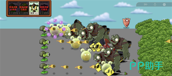 进入中后期,面对高密度、高抗性僵尸波次(如头部覆盖金属桶的铁桶僵尸),需构建复合打击链:先以冰龙木乃伊施加减速效果,压制其推进节奏;再配合火龙果的范围灼烧与机枪射手的高频点射,实现精准控场与爆发输出,力求在僵尸抵达植物阵列前完成清除。