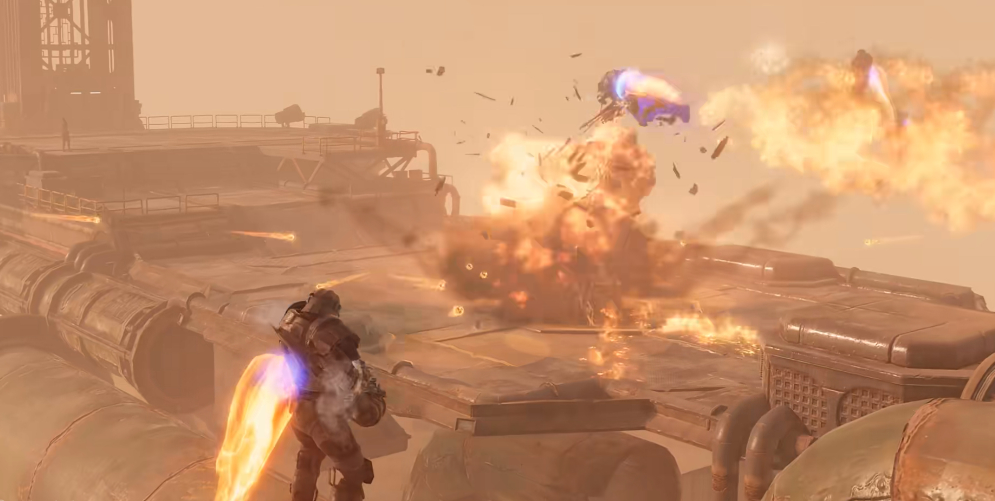 战斗系统采用标准越肩视角架构,操作逻辑沿用左摇杆移动+右摇杆瞄准+右侧按键开火的经典布局。尽管以PVE内容为主导,但射击反馈经过精细化调校:命中判定具备明确僵直动画,弹道轨迹与伤害数值实时可视化,血条、能量条及精准度提示同步呈现;爆头成功时准星触发专属动态特效,强化操作正向反馈。场景中预设大量可交互掩体结构(如坍塌墙体、废弃车辆、金属集装箱等),结合高低差地形与动态光影,显著提升战术博弈深度与临场真实感。