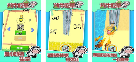 放牛吃草是款内容呈现简单好玩的养牛主题游戏,主要玩法就是放养可爱的小牛让其完成各种任务,给小动物带来的各种生存吃草任务可玩性不错,只要自由放置小牛牛就可以让其自由吃草,整体操作感舒适且内容极为丰富,为玩家带来的画面也显得十分简洁,解压休闲的放牛吃草玩法值得尝试。