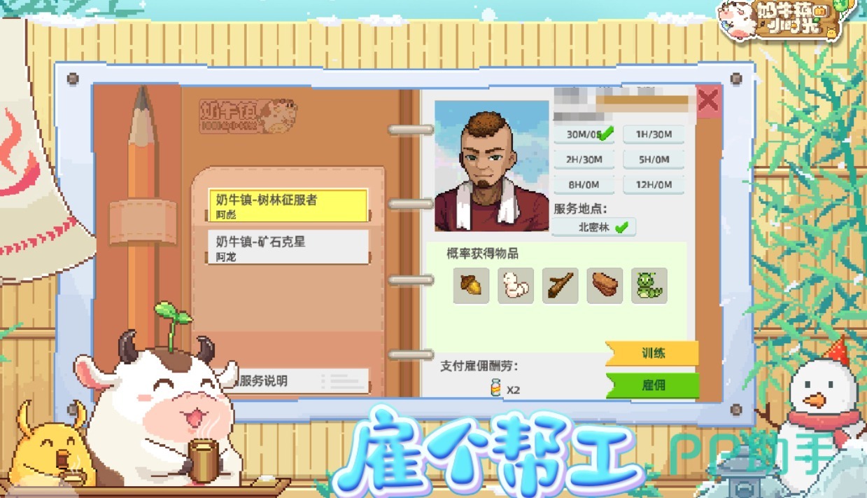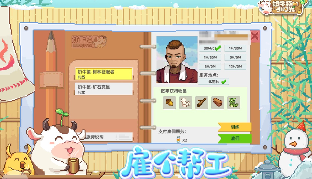 奶牛镇的小时光是拥有着沙盒元素和生存经营玩法的小游戏,像素风的背景加上农场经营的体系可玩性不错,各种有趣好玩的经营任务也提高了玩家的经营能力,像素的牧场背景和角色造型看上去十分精致,更多的经营任务帮助大家成为专业的牧场经营者,想要逃避现实生活的朋友可以进入本作养奶牛。