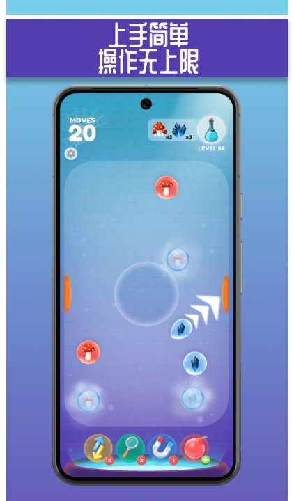这款游戏是弹珠加上消除的玩法,你可以主动选择弹珠的发射角度,瞄准同色的弹珠进行碰撞消除。每发的弹珠数量有限,必须规划好每一发,清掉关卡中的目标球才算过关。越往后玩关卡越有差异,有时会要求你计算反弹路径,有时又会设置不同颜色的干扰球,算是给游戏加了一些策略项。各色道具也很加分,特定的关卡会提供特殊的道具来辅助你通关。