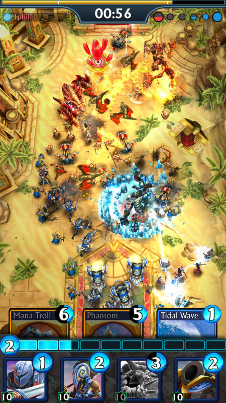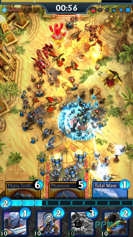 融合希腊神话背景,融合塔防布阵与卡牌收集双核心玩法。实时1v1对战单局时长严格控制在4分钟以内,强调快速响应与战术预判能力。胜利目标为彻底摧毁敌方全部城堡;若时限结束仍未达成,则判定挑战失败。