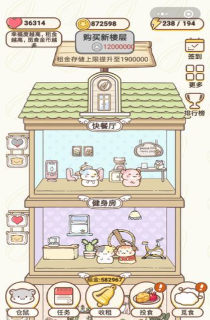 以垂直空间管理为核心的仓鼠群养模拟器。初始提供布丁仓鼠、老婆婆仓鼠等经典品种,随进度解锁更多稀有亚种。公寓采用楼层式结构,玩家需动态扩建空间、划分功能区(进食层、运动层、繁殖层),并根据仓鼠亲密度匹配合住房间。装饰系统包含数十款主题家具与服饰,支持批量换装与场景快照保存。