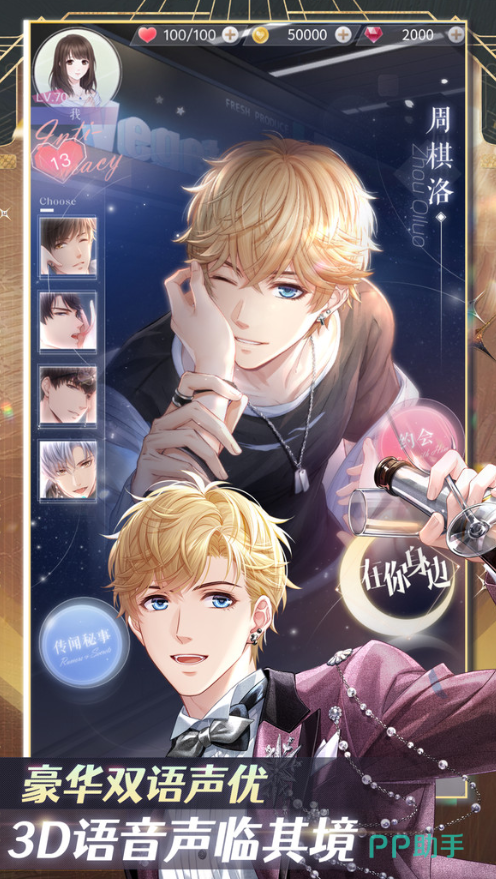 国内恋爱模拟品类标杆产品,采用“影视公司经营+多线情感推进”双轨叙事结构。玩家作为工作室继承者,在解决经营危机过程中与四位背景迥异的男主角建立关系;每条支线含专属剧情章节、动态语音交互及结局分支;UI设计融合胶片质感与手绘元素,过场动画采用专业级分镜脚本,整体视听语言成熟稳定。