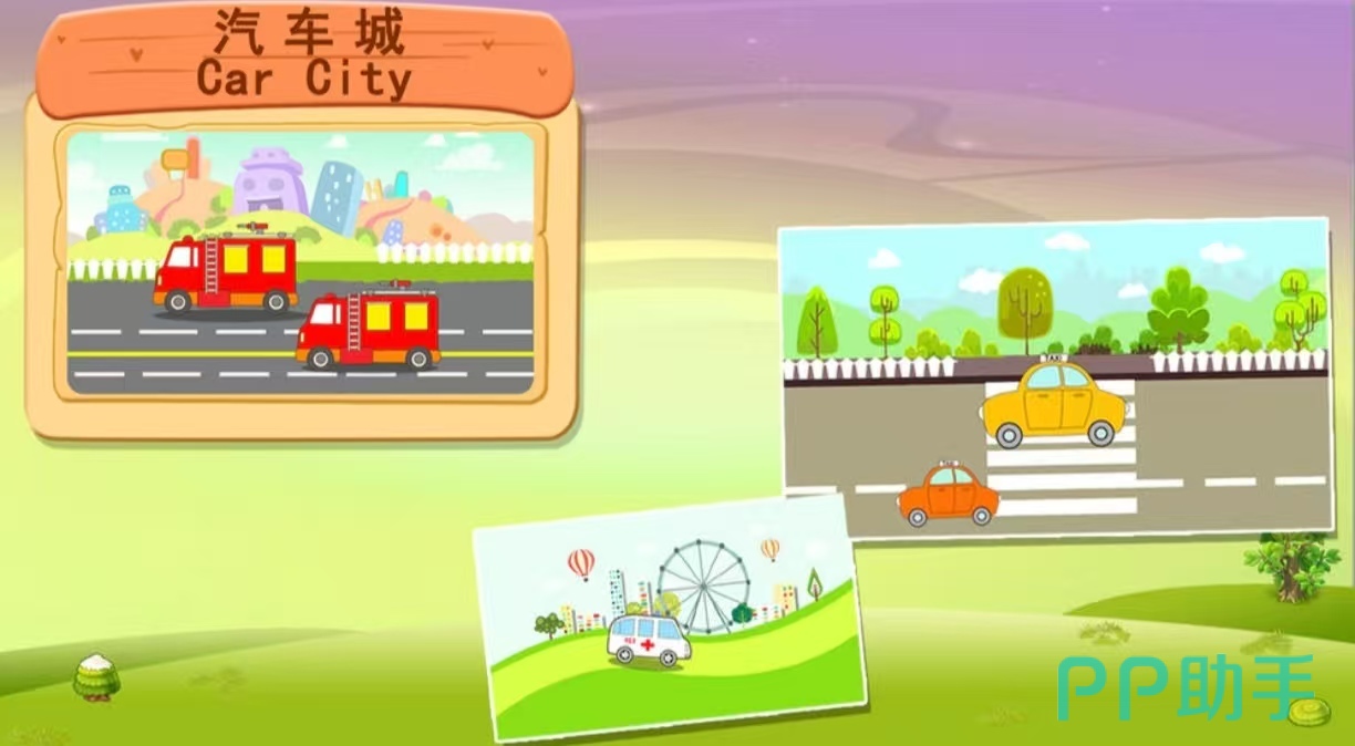 以交通工具为主题的情境化认知游戏,涵盖校车、消防车、救护车、工程车等十余种真实车型。通过轮廓填色、部件拖放、功能配对等轻量互动,帮助幼儿建立“外形—名称—用途”三维关联;每辆车配有语音讲解与动态演示,强化社会角色理解与安全常识输入;色彩系统严格遵循婴幼儿色彩敏感度标准,避免视觉过载。