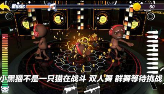 采用美式卡通朋克美术体系,构建快节奏对抗型音游框架。核心玩法围绕“节奏对战”展开,玩家需在限定时间内完成连续精准输入,系统依据Timing精度实时计算压制值。内置本地双人模式与在线天梯赛制,强化竞技反馈与成长路径可视化。
