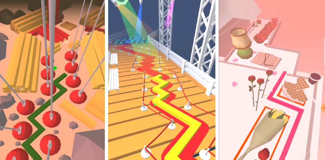 基于三维空间解构的进阶版线条音游。路径不再局限于二维平面,而是沿球面、螺旋轨、分形结构延展,要求玩家预判空间转向节点。音频分析引擎实时解析音乐频段能量分布,驱动场景光影与粒子轨迹变化,达成“所见即所听”的强同步体验。
