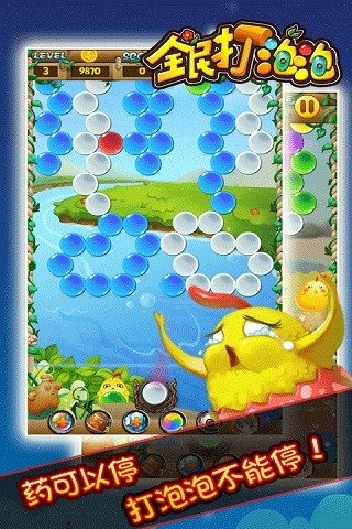 本作延续泡泡龙核心机制——三连同色即消,强调射击精度与预判能力。玩家需在有限角度内调整发射方向,使泡泡精准撞击目标区域;碰撞瞬间触发粒子特效与音效反馈,增强解压体验。关卡推进中,顶部持续下落新泡泡,难度随层数递增,对操作节奏与策略布局提出更高要求。